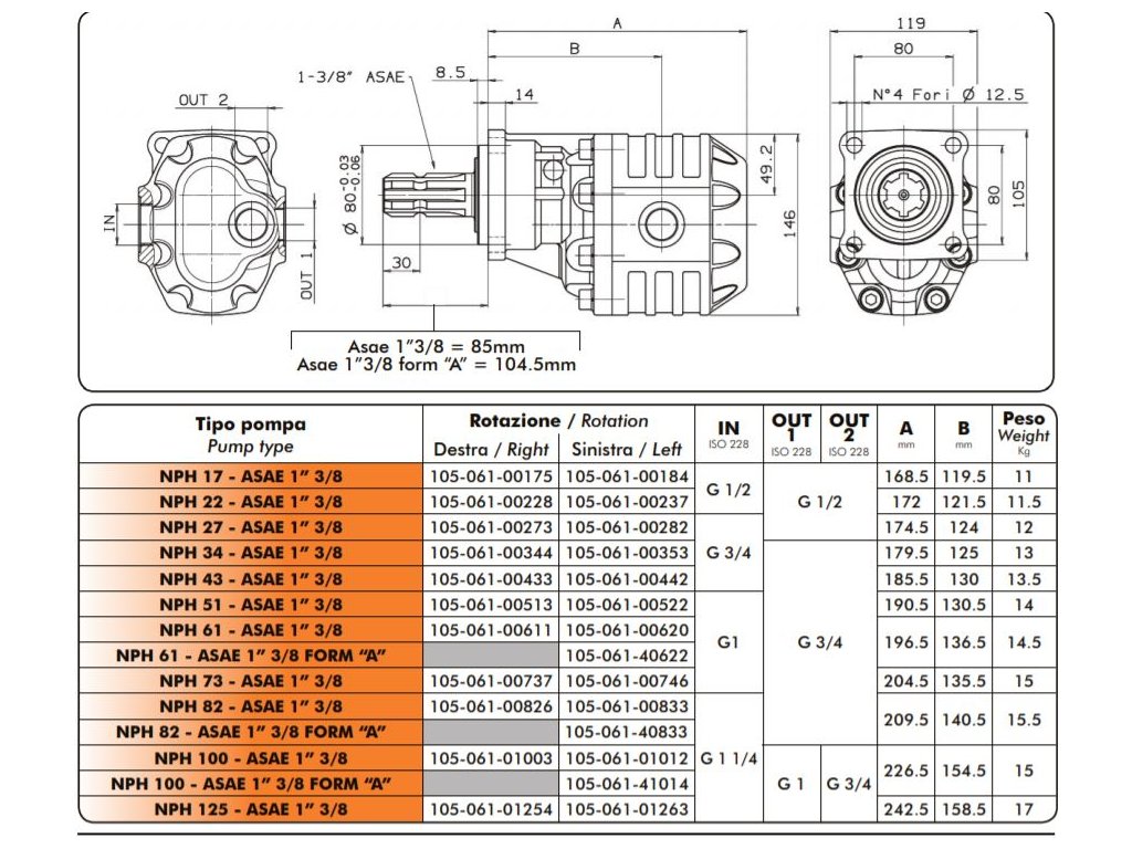 Volumetrický objem čerpadla je od 63 . Čerpadlo mají příruby na 4 díry a hřídel dle normy SAE 1”3/8