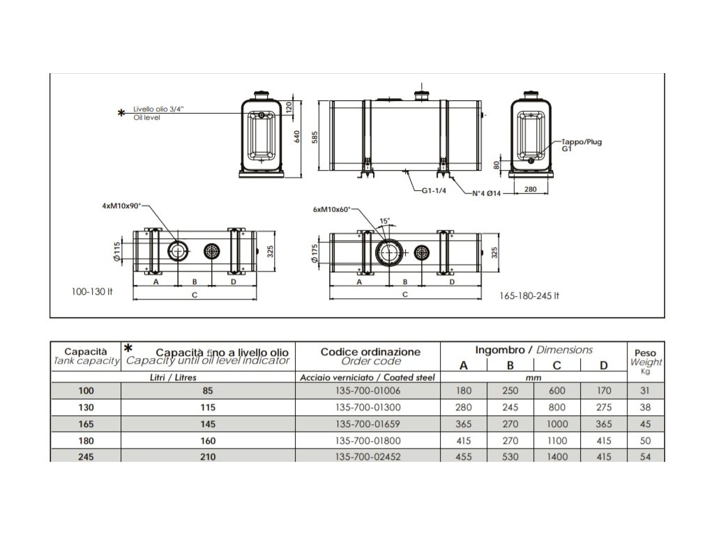 Ocelové hydraulické nádrže pro montáž za kabinu vozidla , s přípravou na filtr víčkem a olejoznakem. 100-245L