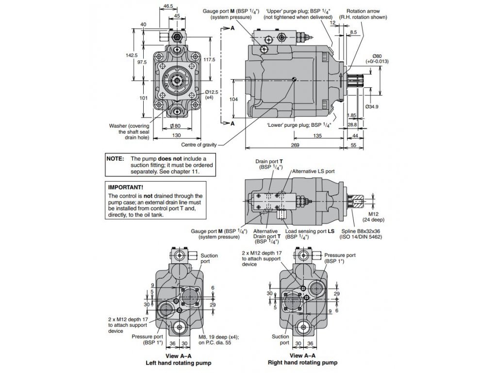 Jedná se o ISO čerpadla určená pro montáž na 4-dírovou přírubu DIN 5462 s 8-mi drážkovou hřídelí o rozměrech 8x32x35mm.