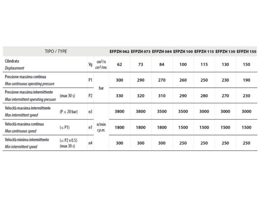 Volumetrický objem čerpadla je od 62 L . Čerpadlo mají příruby na 4 díry a hřídel dle normy SAE 1”3/8
