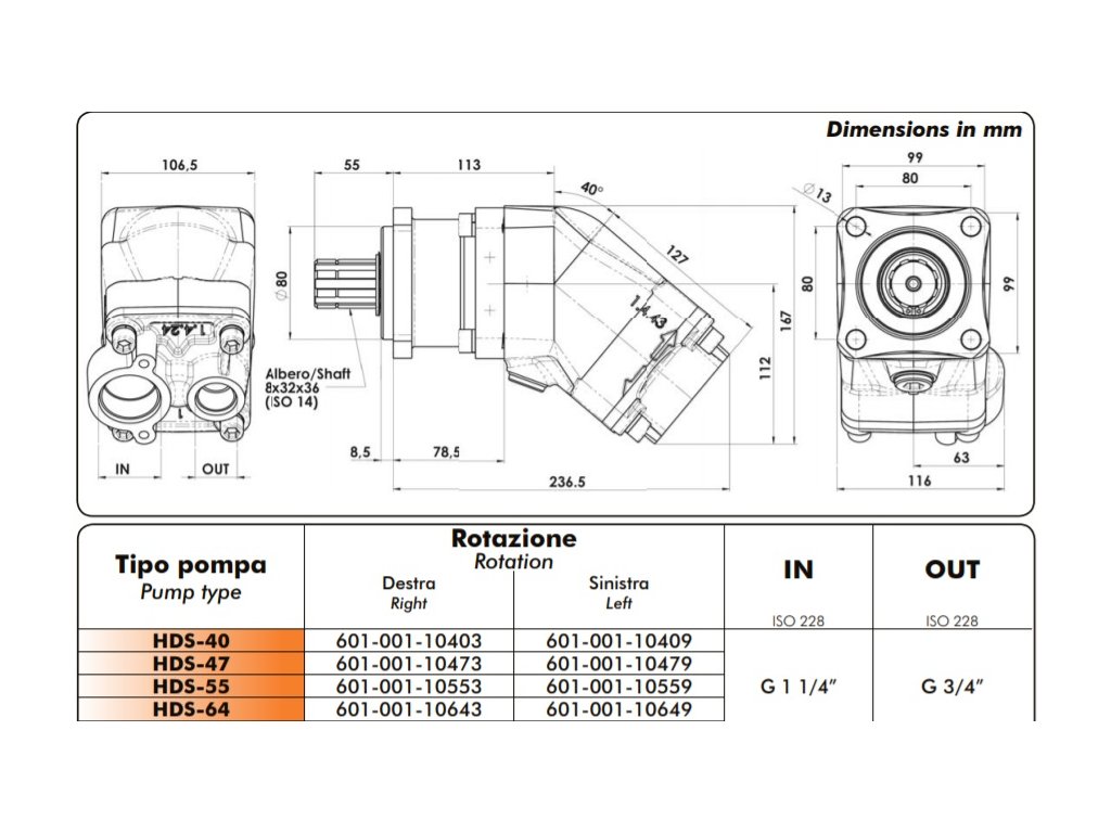 HYDRAULICKÉ ČERPADLO OMFB HDS 40 Pravé - 60100110403