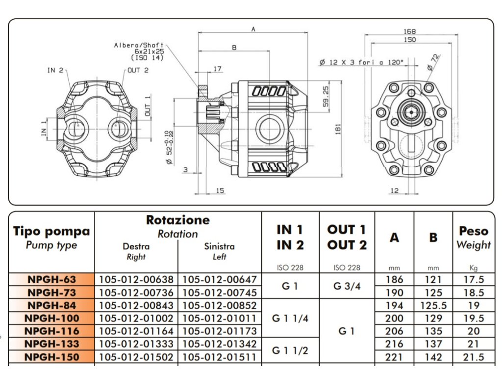 Obousměrná přímá zubová čerpadla OMFB řady NGH. Čerpadla řady NGH jsou celolitinová. Čerpadla nabízejí dlouholetou životnost pro střednětěžké a těžké aplikace mobilní hydrauliky. Čerpadla NPGH jsou konstrukčně řešena jako jednosměrná. VÝHODY Litinové tělo Použití materiálů s vysokou mechanickou odolností CHARAKTERISTIKA 7 modelů: ve velikosti od 63 do 150 cm3 / ot. Nepřetržitý pracovní tlak 180-290 Bar Maximální pracovní rychlost od 1500 do 1800 ot. /min