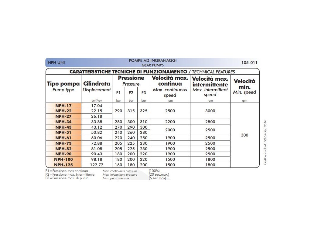 Přímá zubová čerpadla OMFB řady NPH. Čerpadla řady NPH jsou celolitinová. Čerpadla nabízejí dlouholetou životnost pro střednětěžké aplikace mobilní hydrauliky. Čerpadla NPH jsou konstrukčně řešena jako jednosměrná.