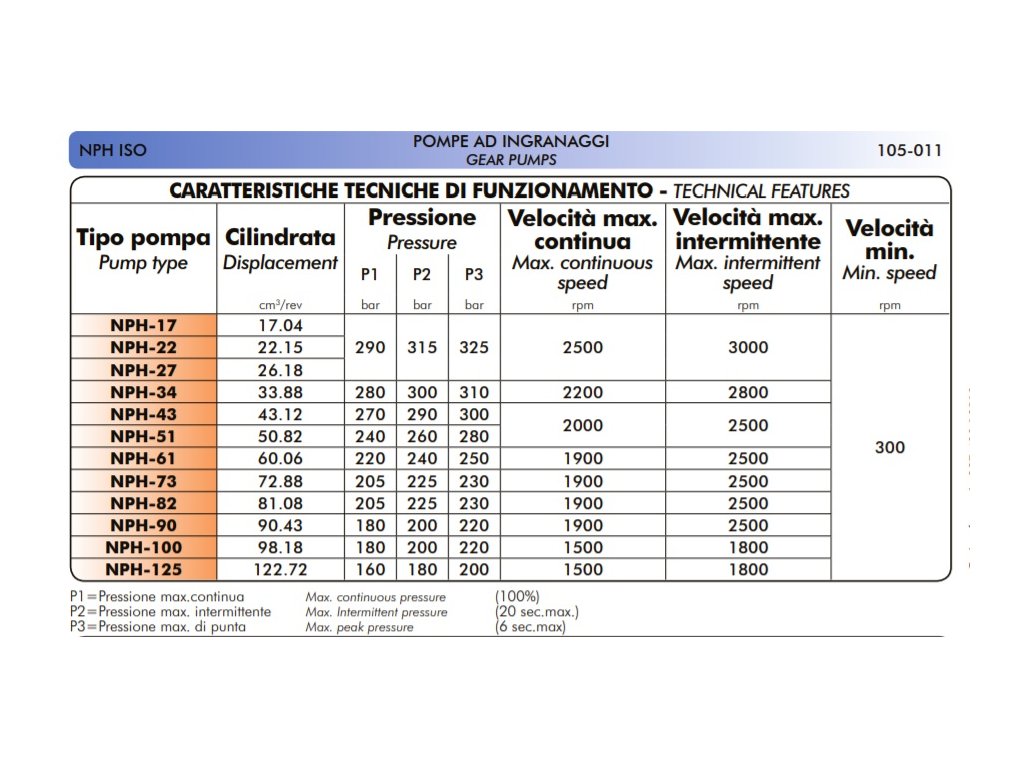 Přímá zubová čerpadla OMFB řady NPH. Čerpadla řady NPH jsou celolitinová. Čerpadla nabízejí dlouholetou životnost pro střednětěžké aplikace mobilní hydrauliky. Čerpadla NPH jsou konstrukčně řešena jako jednosměrná.