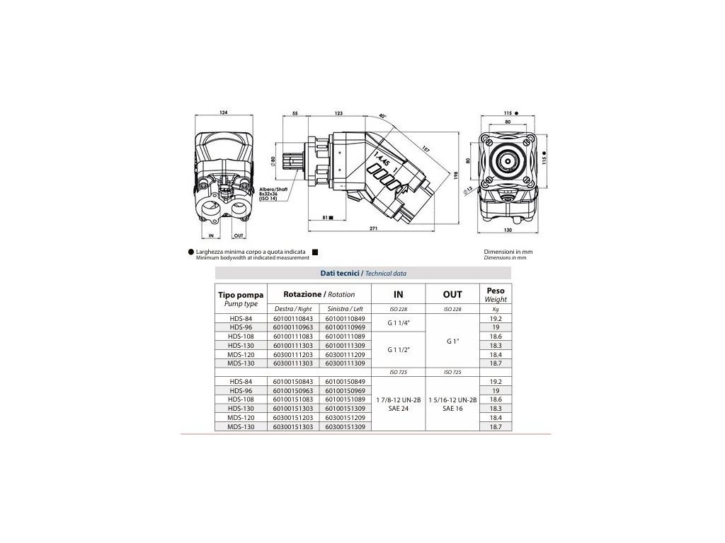 Hydraulické pístové čerpadlo OMFB MDS-130 levé ISO 60300111309