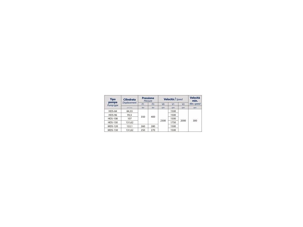 Jednosměrná lomená pístová čerpadla OMFB řady MDS. Kompaktní velikost čerpadel OMFB řady HDS zaručuje, že mohou být montována do míst s omezeným prostorem pro montáž čerpadla. Čerpadla OMFB řady HDS mohou být používána pro poměrně vysoké pracovní otáčky. VÝHODY Čerpadlo má jednoduché nastavení směru otáčení Čerpadla jsou 7 pístková Použití materiálů s vysokou mechanickou odolností CHARAKTERISTIKA 8 modelů: ve velikosti od 80-130 ccm / ot. Nepřetržitý pracovní tlak 350 Bar Vrcholový tlak až 400 Bar Maximální pracovní rychlost od 1500 do 2300 ot. /min