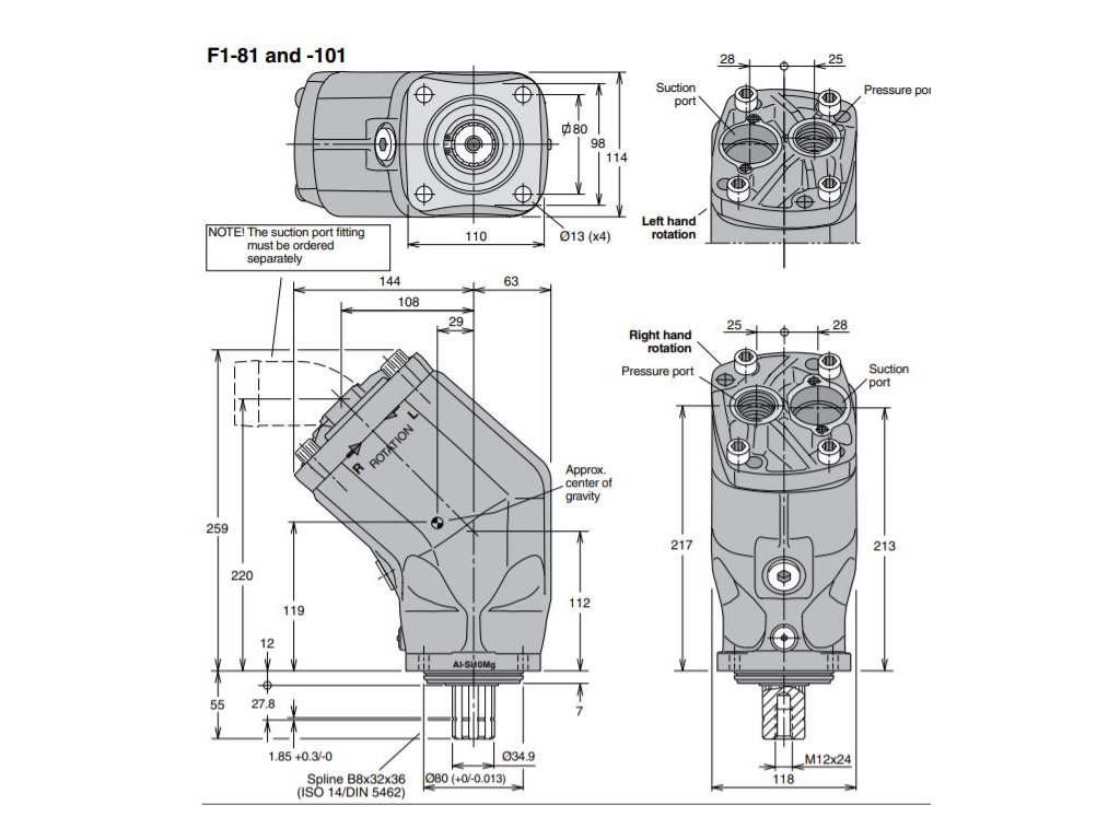 Jedná se o ISO čerpadla určená pro montáž na 4-dírovou přírubu DIN 5462 s 8-mi drážkovou hřídelí o rozměrech 8x32x35mm.