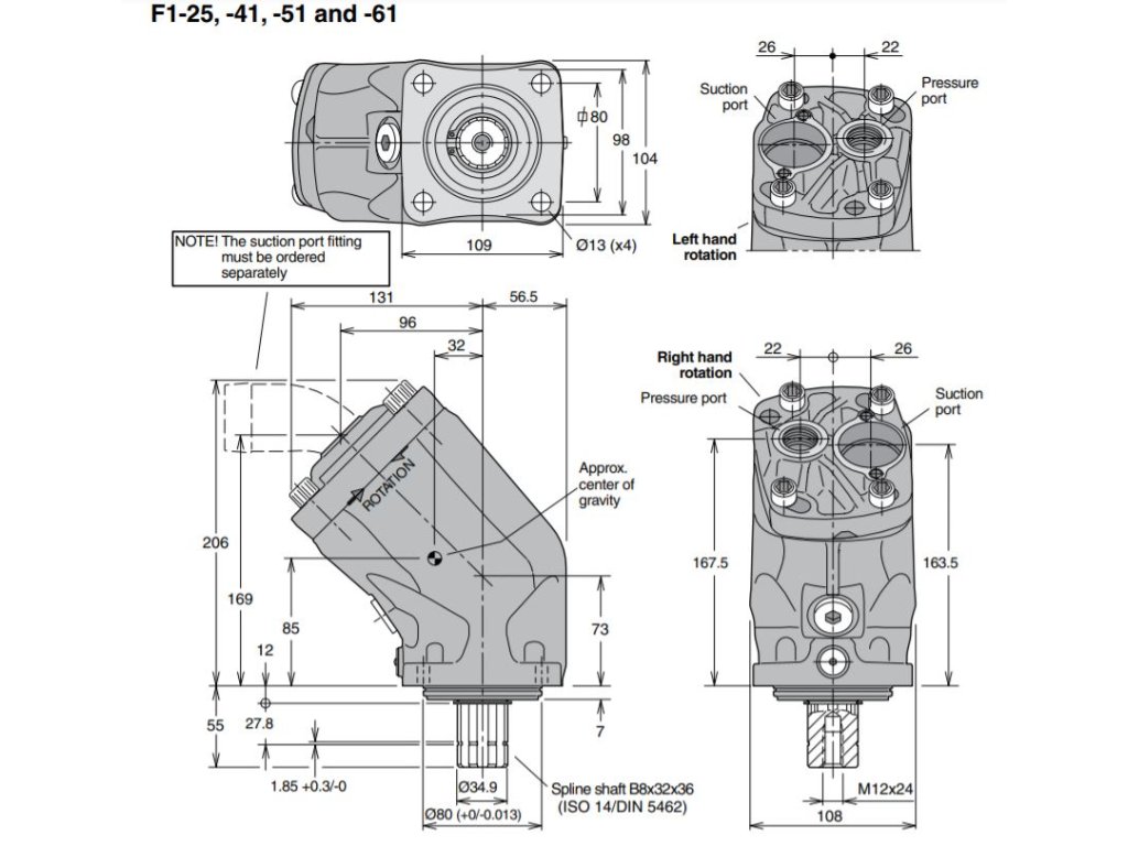 Jedná se o ISO čerpadla určená pro montáž na 4-dírovou přírubu DIN 5462 s 8-mi drážkovou hřídelí o rozměrech 8x32x35mm.
