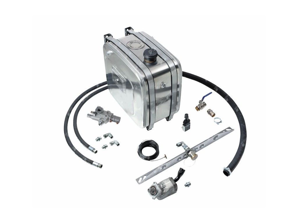 - ANALÝZA VÝBĚRU KOMPONENT: Každá hydraulická sada je vyrobena z komponent zohledňujících provozní parametry sklápěcích vozidel: provozní tlak (válec, ventil, čerpadlo), průtok (čerpadlo, ventil, hadice, rychlospojky), litráž válce, druh vozidla, typ převodovky, převodový poměr pomocného pohonu, kroutící moment, směr otáček, čas potřebný pro zvednutí, umístění jednotlivých komponent na vozidle, stav systému, řízení systému a další dodatečné funkce.