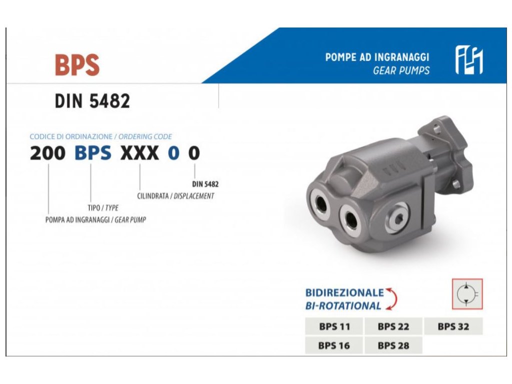 Zubová olejová čerpadla řady BPS jsou moderně konstruovaná obousměrná čerpadla. Jedná se o UNI čerpadla určena pro montáž na 3dírovou přírubu DIN 5482 s 8mi drážkovou hřídelí o rozměrech 22x19mm.